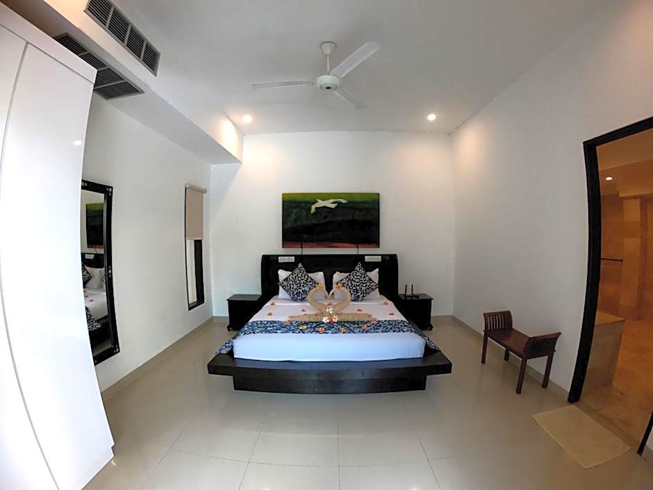 Spacious air-conditioned villa features a private pool, two bedrooms and a kitchen. Its living room has a flat-screen TV and DVD player. Private bathroom has a shower.